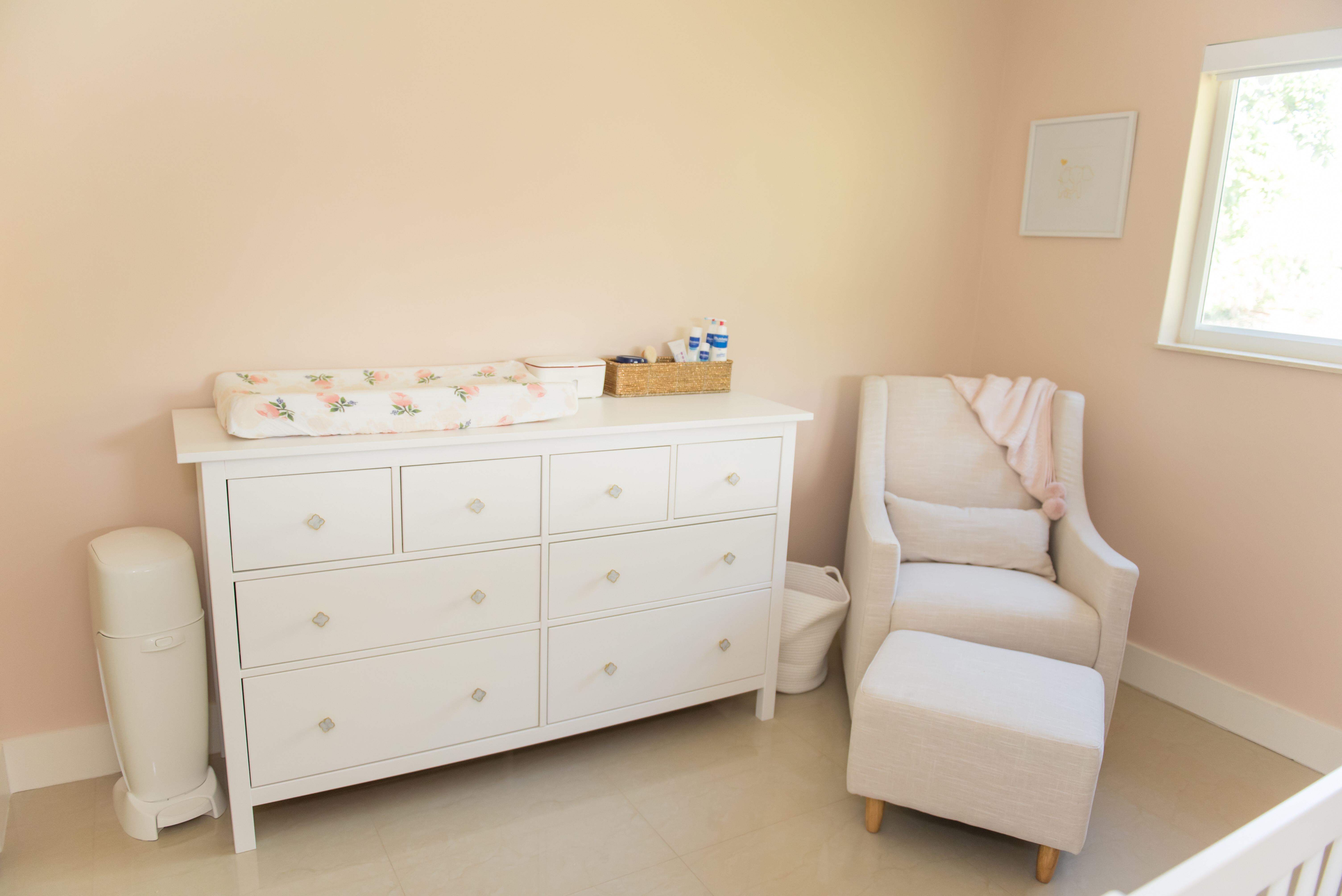 Also pictured: Hamper, Diaper Genie, blanket, basket, wipe dispenser