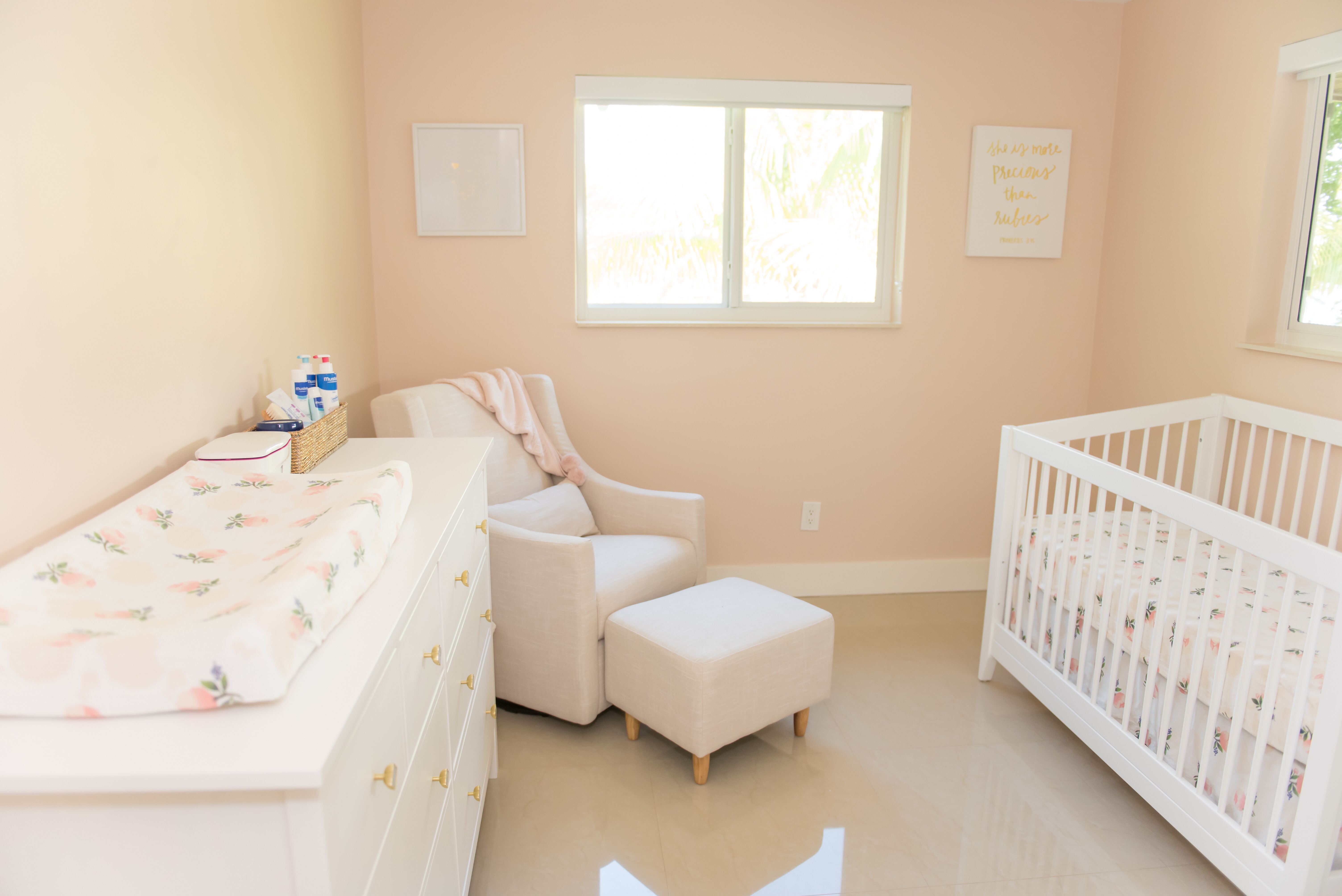 Hi everyone! I️ promised to reveal the whole nursery and here it finally is! I️ am still missing a mirror above her dresser, but am still searching for the perfect one. (Promise to update post when I️ have it.)